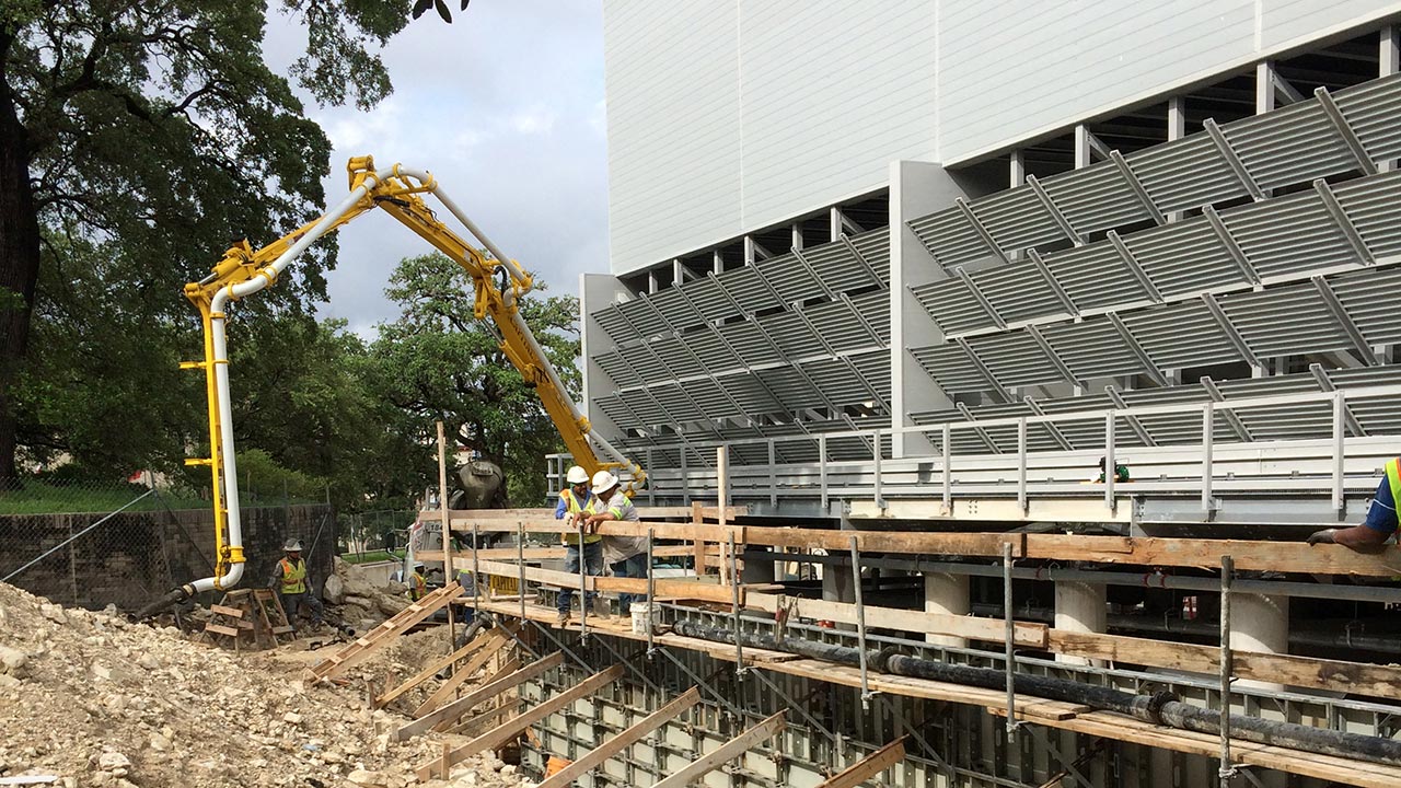 Site concrete and minor earthwork for a new ground up chiller plant on the UT campus. Concrete scope included curb and gutter, concrete paving/approaches, site retaining walls including a 240’ radius wall around the TES tank, pervious paving, and exposed aggregate paving. We were also responsible for the gravel backfill and french drain behind the site retaining walls.